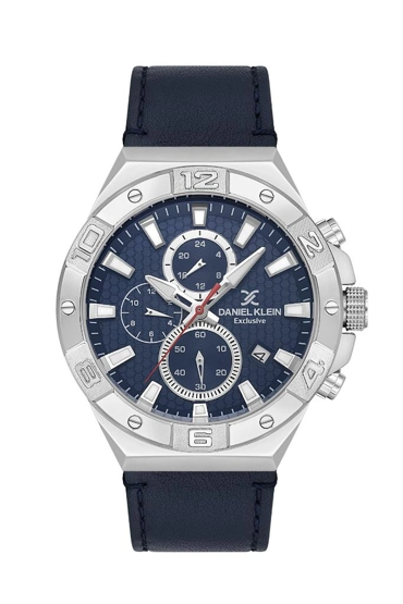 Daniel Klein DK.1.13744-2 Exclusive Tüm Fonksiyonları Aktif 5 ATM Suya Dayanıklı Deri Kordonlu Lacivert Erkek Kol Saati Metalik Gri