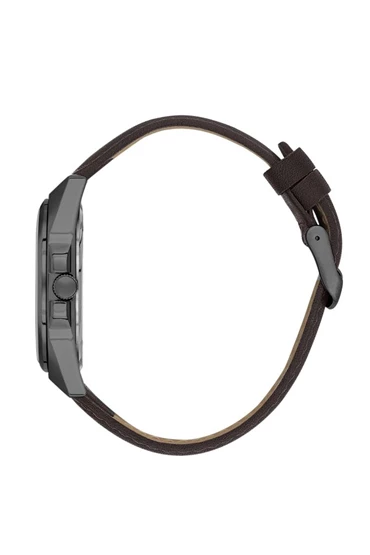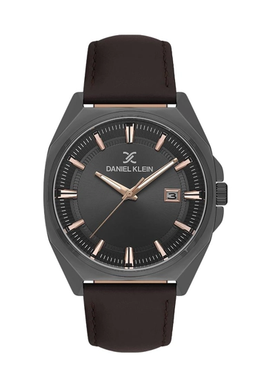 Daniel Klein DK.1.13752-5 Takvim Göstergeli 5 ATM Suya Dayanıklı Deri Kordonlu Kahverengi Erkek Kol Saati Metalik Gri