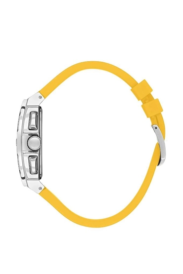 Daniel Klein DK.1.13757-2 Exclusive Dikdörtgen Kasa Tüm Fonksiyonları Aktif 5 ATM Suya Dayanıklı Silikon Kordonlu Sarı Erkek Kol Saati