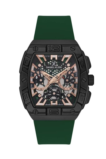 Daniel Klein DK.1.13757-4 Exclusive Dikdörtgen Kasa Tüm Fonksiyonları Aktif 5 ATM Suya Dayanıklı Silikon Kordonlu Yeşil Erkek Kol Saati