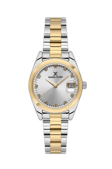 Daniel Klein DK.1.13758-9 Bombeli Takvim Taşlı Tasarım Metalik-Altın Renk Kadın Kol Saati