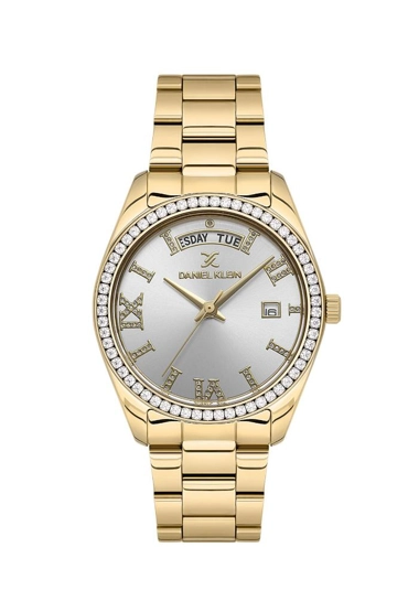 Daniel Klein DK.1.13771-2 Gün Göstergeli Taşlı Tasarım Suya Dayanıklı Altın Renk Kadın Kol Saati