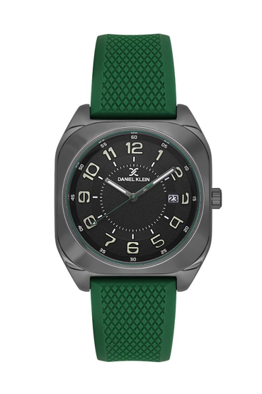 Daniel Klein DK.1.13796-6 Takvim Göstergeli Kare Kasa 5 ATM Suya Dayanıklı Silikon Kordonlu Sportif Tasarım Yeşil Erkek Kol Saati Çok Renkli