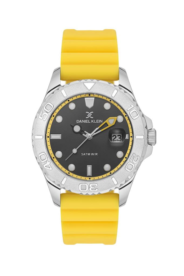 Daniel Klein DK.1.13816-4 Fosforlu Kadran 5 ATM Suya Dayanıklı Silikon Kordonlu Çelik Kaplama Sarı Erkek Kol Saati Çok Renkli