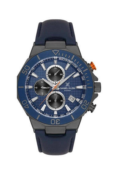 Daniel Klein DK.1.13841-4 Exclusive Tüm Fonksiyonları Aktif Tachymetre Özellikli Deri Kordonlu Lacivert Erkek Kol Saati Metalik Gri