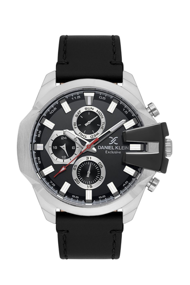 Daniel Klein DK.1.13849-1 Exclusive Tüm Fonksiyonları Aktif Deri Kordonlu Siyah Erkek Kol Saati