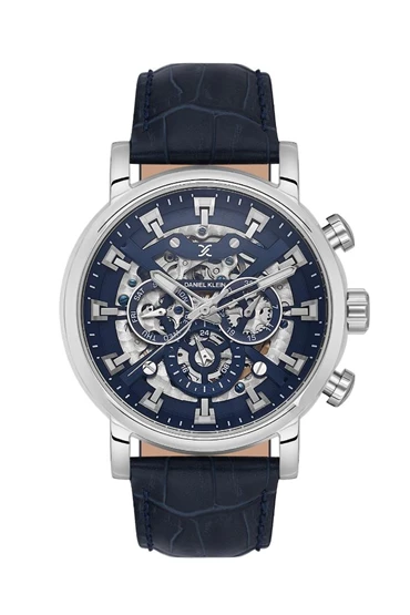 Daniel Klein DK.1.13850-2 Otomatik Mekanizmaya Sahip Gün ve Takvim Göstergeli 3 ATM Suya Dayanıklı Deri Kordonlu Lacivert Erkek Kol Saati