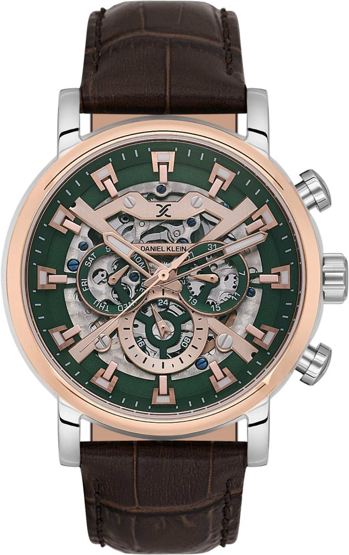 Daniel Klein DK.1.13850-4 Otomatik Mekanizmalı Gün ve Takvim Göstergeli 5 ATM Suya Dayanıklı Deri Kordonlu Kahverengi Erkek Kol Saati Çok Renkli