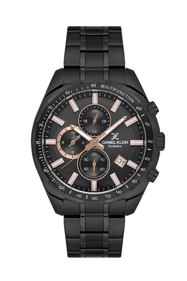 Daniel Klein DK.1.13854-5 Exclusive Tüm Fonksiyonları Aktif Tachymetre Özellikli Çelik Kaplama Siyah Erkek Kol Saati