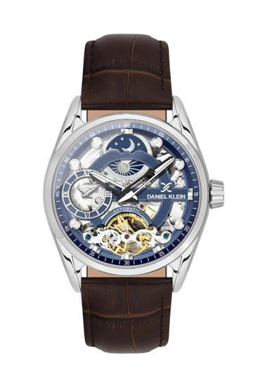 Daniel Klein DK.1.13856-3 3 ATM Suya Dayanıklı Otomatik Mekanizmalı Deri Kordonlu Kahverengi Erkek Kol Saati Çok Renkli