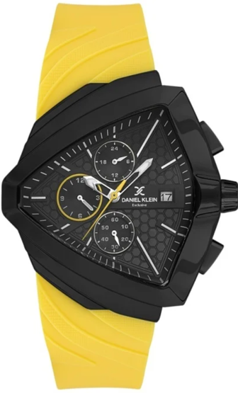 Daniel Klein DK.1.13860-6 Exclusive Fonksiyonlar Aktif Silikon Kordon Çelik Kaplama Kasa Sarı Erkek Kol Saati