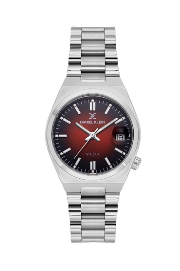 Daniel Klein DK.1.13862-9 Çelik Kordonlu 3 ATM Suya Dayanıklı Kırmızı Kadran Metalik Renk Kadın Kol Saati