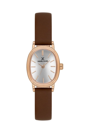 Daniel Klein DK.1.13869-5 Minimal Tasarım Deri Kordonlu Oval Kasa 3 ATM Suya Dayanıklı Kahverengi Kadın Kol Saati