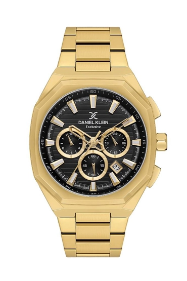 Daniel Klein DK.1.13906-3 Exclusive Tüm Fonksiyonları Aktif 3 ATM Suya Dayanıklı Çelik Kaplama Altın Renk Erkek Kol Saati
