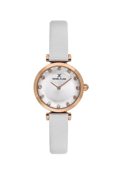 Daniel Klein DK.1.13919-6 Taşlı Tasarım Deri Kordon Metal Kasa 3 ATM Suya Dayanıklı Beyaz Renk Kadın Kol Saati