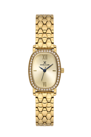 Daniel Klein DK.1.13942-2 Dikdörtgen Kasa Taşlı Tasarım 3 ATM Suya Dayanıklı Altın Renk Kadın Kol Saati