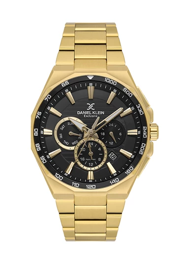 Daniel Klein DK.1.13977-5 Siyah Kadran Altın Kasa Altın Rengi Çelik Kordon 3 Atm Erkek Pilli Kol Saati