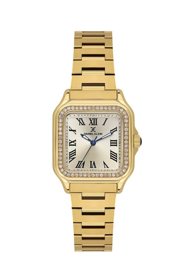 Daniel Klein DK.1.14040-2 Taşlı Tasarım Kare Kadranlı Metal Kordon Metal Kasa 3 ATM Suya Dayanıklı Altın Renk Kadın Kol Saati