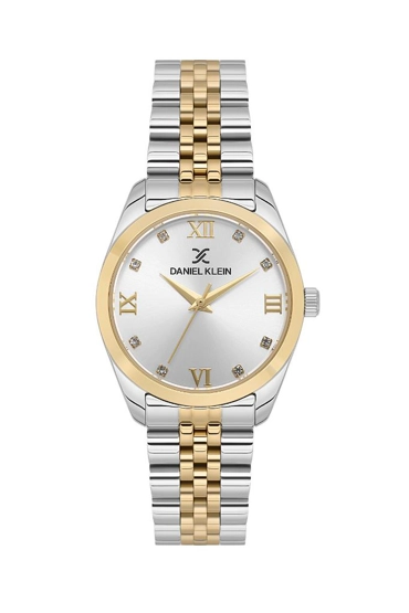 Daniel Klein DK.2.2306-02 Romen Rakamlı Taşlı Tasarım 3 ATM Suya Dayanıklı Metal-Altın Renk Kadın Kol Saati Çok Renkli