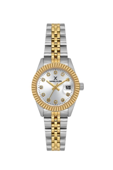 Daniel Klein DK.3.10029-2 Taşlı Tasarım Bombeli Takvim Çelik Kaplama Metalik-Altın Renk Kadın Kol Saati