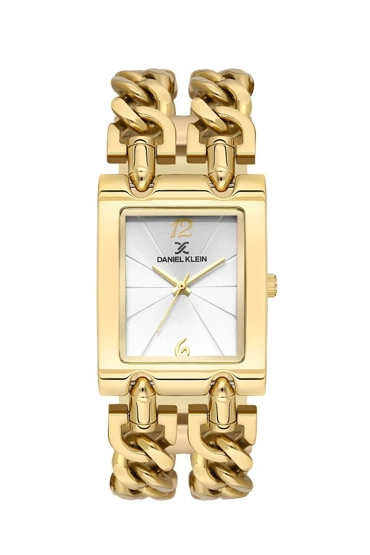 Daniel Klein DK.3.10036-2 Dikdörtgen Kadran Zincir Kordonlu Çelik Kaplama Altın Renk Kadın Kol Saati
