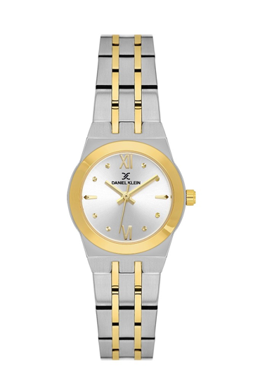 Daniel Klein DK.3.10059-3 Romen Rakamlı Taşlı Tasarım 3 Atm Suya Dayanıklı Metalik-Altın Renk Kadın Kol Saati Çok Renkli