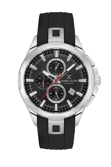 Daniel Klein DKE.1.10657-1 Exclusive Tüm Fonksiyonlar Aktif Silikon Kordonlu Farklı Renk Seçenekli Çelik Kaplama Erkek Kol Saati(Black-Silver)