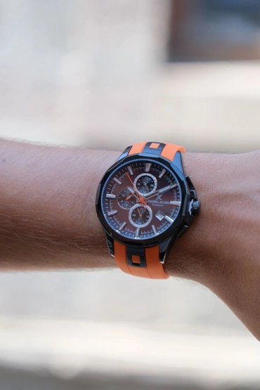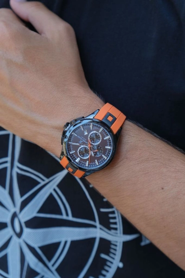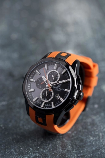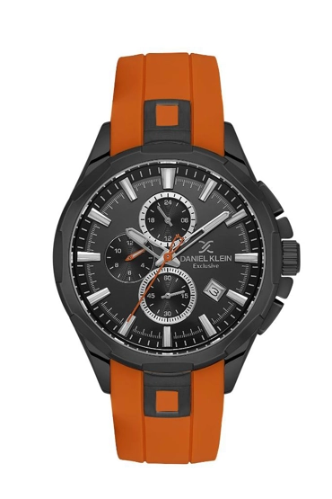Daniel Klein DKE.1.10657-4 Exclusive Tüm Fonksiyonlar Aktif Silikon Kordonlu Farklı Renk Seçenekli Çelik Kaplama Erkek Kol Saati(Turuncu) Turuncu