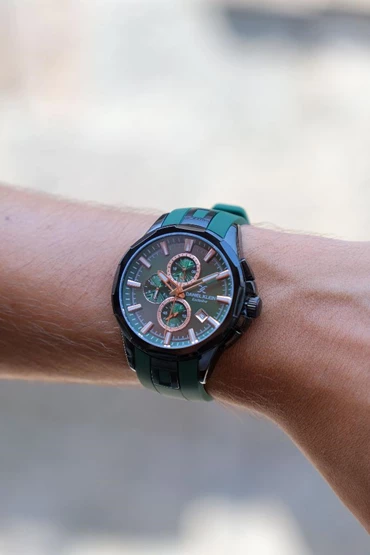 Daniel Klein DKE.1.10657-5 Exclusive Tüm Fonksiyonlar Aktif Silikon Kordonlu Farklı Renk Seçenekli Çelik Kaplama Erkek Kol Saati(Yeşil)