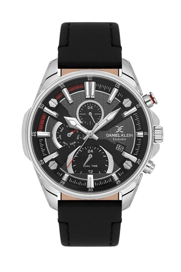 Daniel Klein DKE.1.10688-1 Exclusive Tüm Fonksiyonları Aktif 3 ATM Su Geçirmezliğe Sahip Deri Kordonlu Siyah Erkek Kol Saati