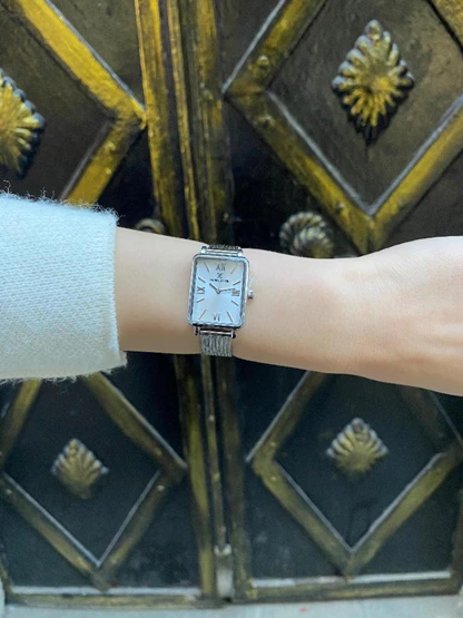 Daniel Klein DKE.1.10741-1 Dikdörtgen Kasa Hasır Kordon Minimal Tasarım Kadın Kol Saati