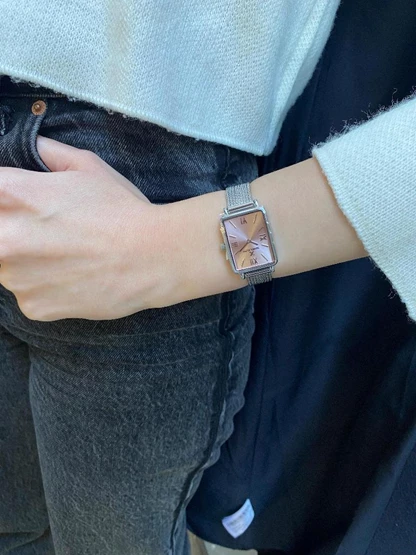 Daniel Klein DKE.1.10741-2 Dikdörtgen Kasa Hasır Kordon Minimal Tasarım Kadın Kol Saati