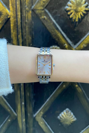 Daniel Klein DKE.1.10750-6 Dikdörtgen Kasa Romen Rakamlı Minimal Tasarım Kadın Kol Saati