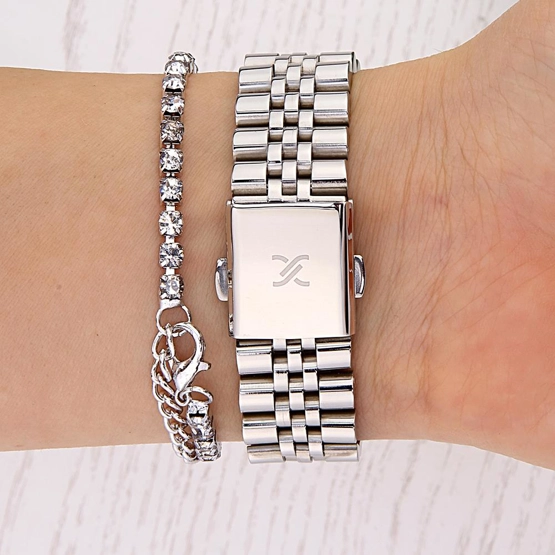 Kasa Çapı: 27 mm - Kasa Şekli: Dikdörtgen - Kasa Materyali: Metal - Kasa Rengi: Metalik Gri - Kordon Materyali: Çelik - Kordon Rengi: Metalik Gri- Kadran Rengi: Gümüş Tonu - Kadran Işığı: Yok - Taş: Var - Çalışma Şekli: Analog - Teknolojisi: Quartz - Takvim: Yok - Kronometre: Yok - Alarm: Yok - Cam Özelliği: Mineral - Özellik: Bileklik Hediyeli - Su Geçirmezlik: 3 ATM - Garanti Süresi: 2 YIL - Cinsiyet: Kadın