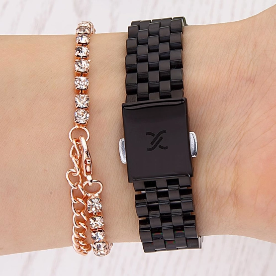 Kasa Çapı: 33 mm - Kasa Şekli: Yuvarlak - Kasa Materyali: Metal - Kasa Rengi: Rose Gold - Kordon Materyali: Çelik - Kordon Rengi: Siyah- Kadran Rengi: Siyah - Kadran Işığı: Yok - Taş: Var - Çalışma Şekli: Analog - Teknolojisi: Quartz - Takvim: Yok - Kronometre: Yok - Alarm: Yok - Cam Özelliği: Mineral - Özellik: Bileklik Hediyeli - Su Geçirmezlik: 3 ATM - Garanti Süresi: 2 YIL - Cinsiyet: Kadın