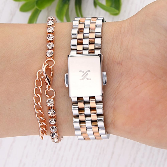 Kasa Çapı: 33 mm - Kasa Şekli: Yuvarlak - Kasa Materyali: Metal - Kasa Rengi: Rose Gold - Kordon Materyali: Çelik - Kordon Rengi: Metalik Gri/Rose Gold- Kadran Rengi: Gümüş Tonu - Kadran Işığı: Yok - Taş: Var - Çalışma Şekli: Analog - Teknolojisi: Quartz - Takvim: Yok - Kronometre: Yok - Alarm: Yok - Cam Özelliği: Mineral - Özellik: Bileklik Hediyeli - Su Geçirmezlik: 3 ATM - Garanti Süresi: 2 YIL - Cinsiyet: Kadın