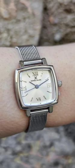 Daniel Klein DKE.1.10844-1 Kare Kadran Hasır Kordon Metal Kasa 3 ATM Suya Dayanıklı Metalik Renk Kadın Kol Saati