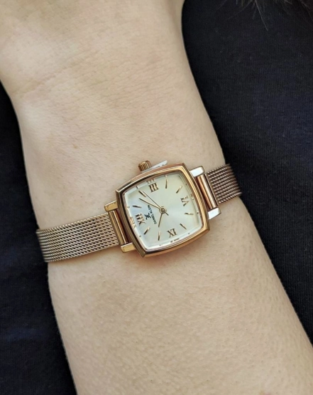 Daniel Klein DKE.1.10844-5 Kare Kadran Hasır Kordon Metal Kasa 3 ATM Suya Dayanıklı Rose Renk Kadın Kol Saati Rose Altın