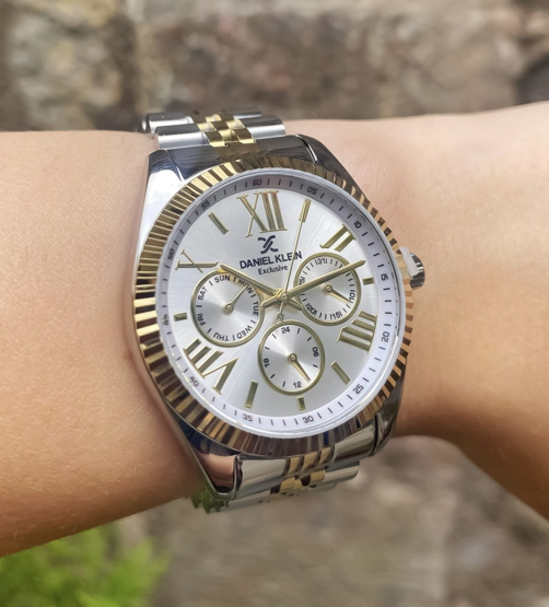 Daniel Klein DKE.1.10847-3 Exclusive Tüm Fonksiyonlar Aktif 3 Atm Suya Dayanıklı Metalik-Altın Renk Kadın Kol Saati Çok Renkli