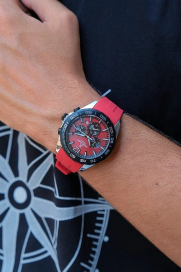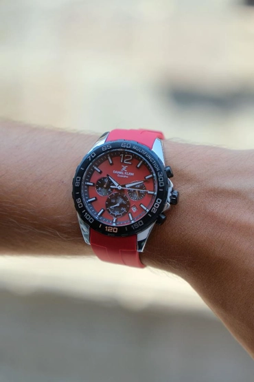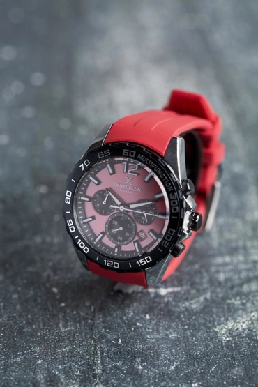 Daniel Klein DKE.1.13742-2 Exclusive Tüm Fonksiyonlar Aktif Silikon Kordonlu Farklı Renk Seçenekli Çelik Kaplama Erkek Kol Saati(Kırmızı)