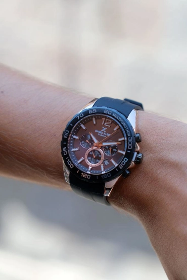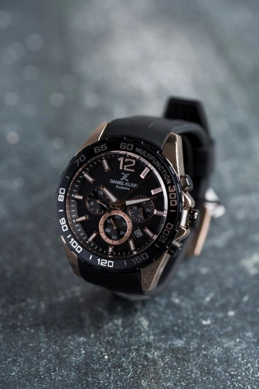 Daniel Klein DKE.1.13742-6 Exclusive Tüm Fonksiyonlar Aktif Silikon Kordonlu Farklı Renk Seçenekli Çelik Kaplama Erkek Kol Saati(Siyah-Bakır)