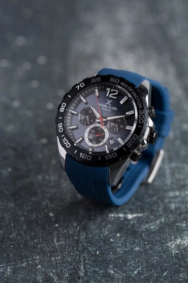 Daniel Klein DKE.1.13742-8 Exclusive Tüm Fonksiyonlar Aktif Silikon Kordonlu Farklı Renk Seçenekli Çelik Kaplama Erkek Kol Saati(Lacivert-Gümüş)