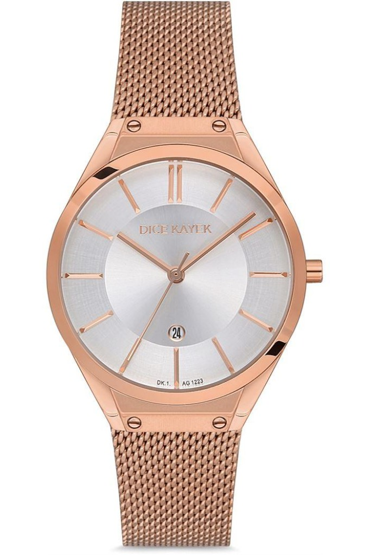 Dice Kayek DK.1.AG1223.01 Hasır Kordon Çelik Kasa 5 ATM Suya Dayanıklı Rose Gold Renk Kadın Kol Saati