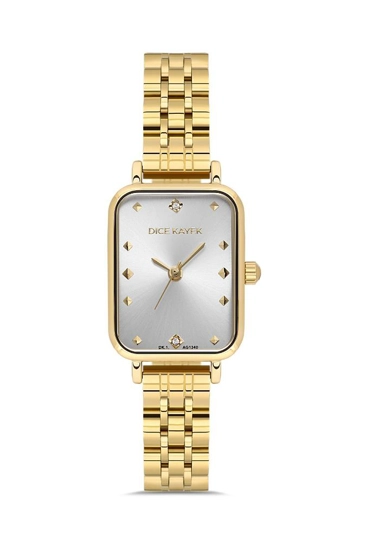 Dice Kayek DK.1.AG1340.05 Taşlı Minimal Tasarım Dikdörtgen Kasa Çelik Kordonlu Altın Renk Kadın Kol Saati