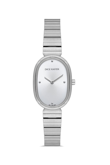 Dice Kayek DK.1.AG1365.01 Oval ve Taşlı Tasarım 5 ATM Suya Dayanıklı Çelik Kordon Metalik Renk Kadın Kol Saati