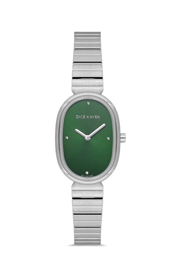 Dice Kayek DK.1.AG1365.02 Oval ve Taşlı Tasarım 5 ATM Suya Dayanıklı Çelik Kordon Metalik Renk Kadın Kol Saati