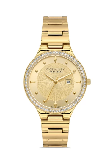 Dice Kayek DK.1.AG1372.GA4-07 Taşlı Tasarım Çelik Kordon Çelik Kasa 5 ATM Suya Dayanıklı Altın Renk Kadın Kol Saati