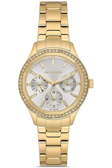 Dice Kayek DK.1.AG1375.03 Taşlı Tasarım Çelik Kordon Çelik Kasa 5 ATM Suya Dayanıklı Altın Renk Kadın Kol Saati