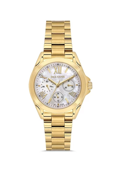 Dice Kayek DK.1.AG1376.03 Tüm Fonksiyonları Aktif Çelik Kordonlu 5 ATM Suya Dayanıklı Altın Renk Kadın Kol Saati