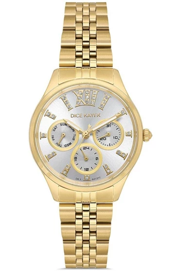 Dice Kayek DK.1.AG1377.03 Taşlı Tasarım Çelik Kordon Çelik Kasa 5 ATM Suya Dayanıklı Altın Renk Kadın Kol Saati
